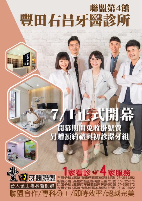 深耕高雄多年的豐田牙醫聯盟第四館-豐田右昌牙醫診所將於7月1日起為您服務!