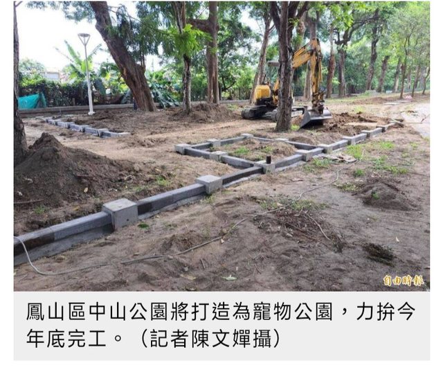 : 物公園,目前工程已動工,預計今年底完成,將成為鳳山區首座寵物公園。
