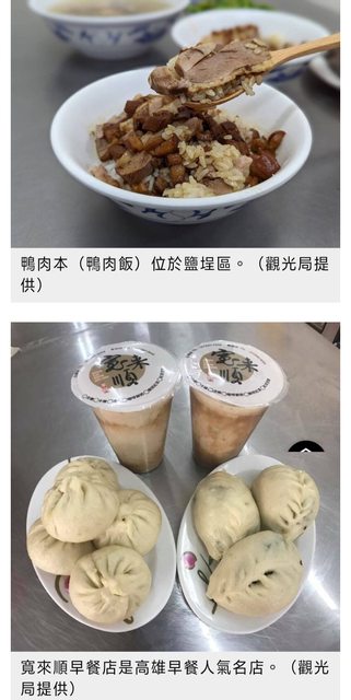 則推薦不一樣赤肉焿;前鎮區龍舫牛肉麵疙瘩、老北京炸醬麵;小港區阿瑞鮮魚湯;林園區