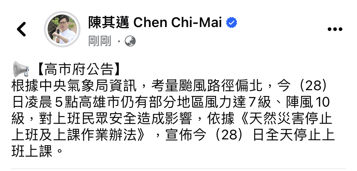 → poz93 : 換了市長後就在靠北不放颱風假 07/28 02:05