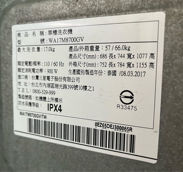 1.三星變頻17公斤洗衣機:故障碼UB,剛更換過新吊桿,更換完後故障碼4C,脫水異音,