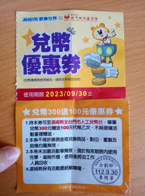 4.湯姆熊兌幣優惠券 2張