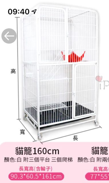 物品名稱:雙層貓籠160cm高,詳如圖