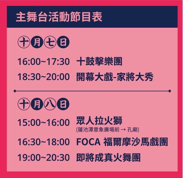 時間| 10/7 (六) ~ 10/9(一) 10/7(六) 18:30 開幕大戲
