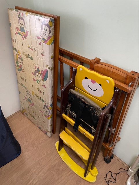 約四年前親戚送的恩典牌嬰兒床和餐椅,但自己已經有另外準備嬰兒用品,所以一直放在