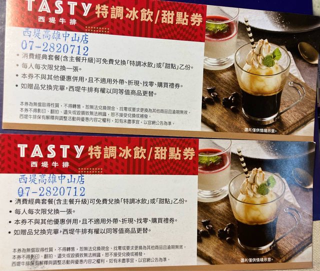 物品名稱:西堤特調冰飲/甜品券兩張