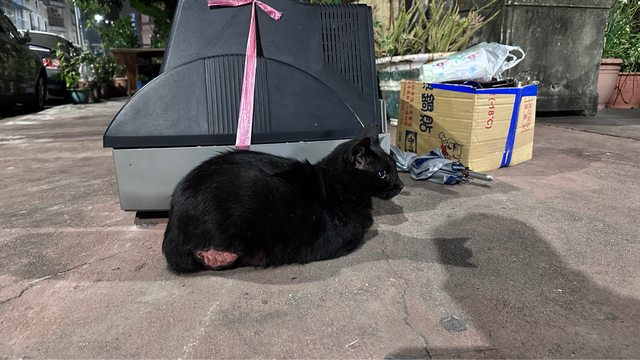 哈囉各位高雄鄉親,小弟目前在駁二附近發現一隻黑貓目前受傷,右大腿後部不明裂傷,