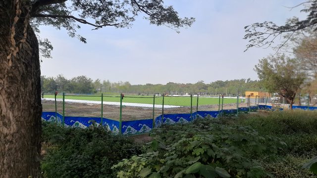 目前看不出來有無夜間照明設備。人工草皮已經鋪設完畢。再請版友接力更新球場完工進