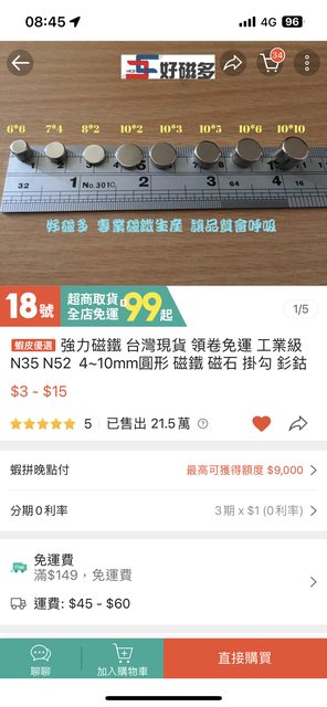 1.3M背膠磁條貼*3個或強力迷你磁鐵*60顆