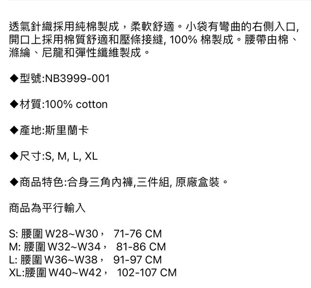 物品名稱:男性CK合身黑色三角內褲三件裝,尺碼L(購自momo網)