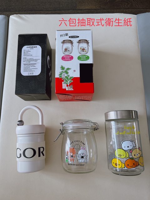 4.全新保溫杯+玻璃儲存罐 *2,換六包抽取式衛生紙