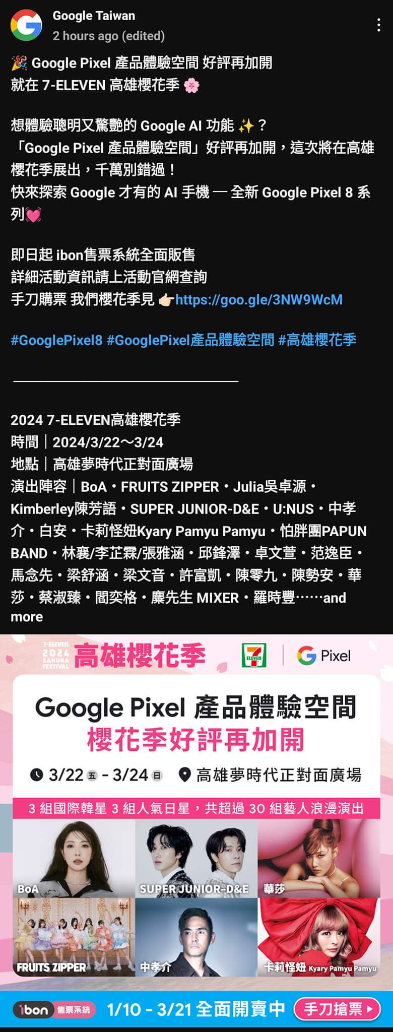 高雄櫻花季公布多組演出卡司,確定華莎以及卡莉怪妞皆會在3/22演出,令粉絲驚喜不已