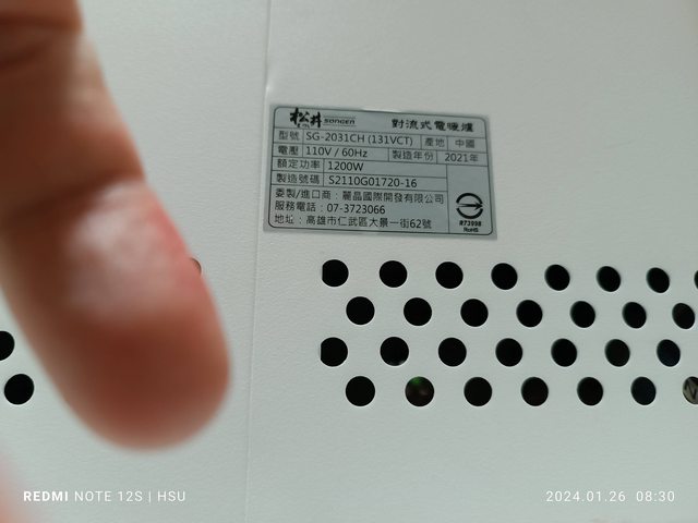 物品名稱:對流式電暖爐