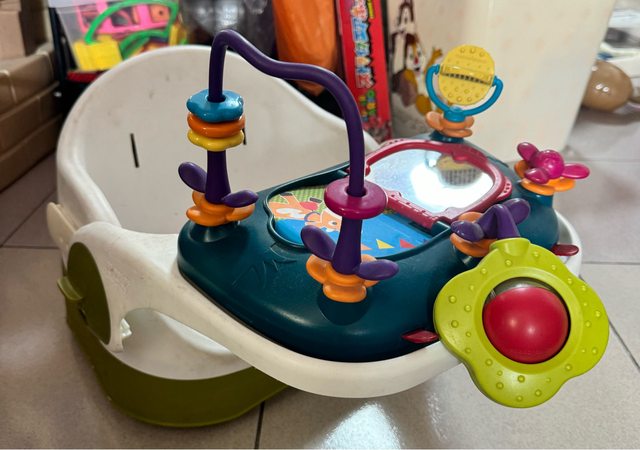 有一段時間沒用了,安全帶跟一個軟坐墊一開始為了方便清潔所以拔起來,需自行裝上,