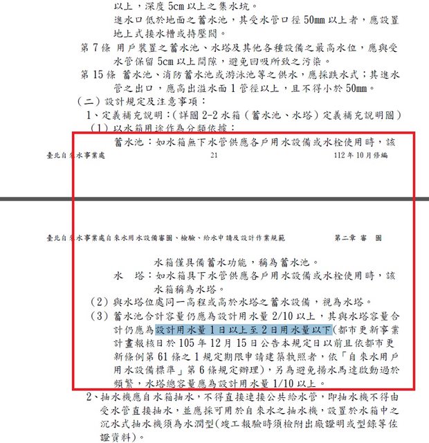 重點是蓄水池加水塔到一日到二日用水量