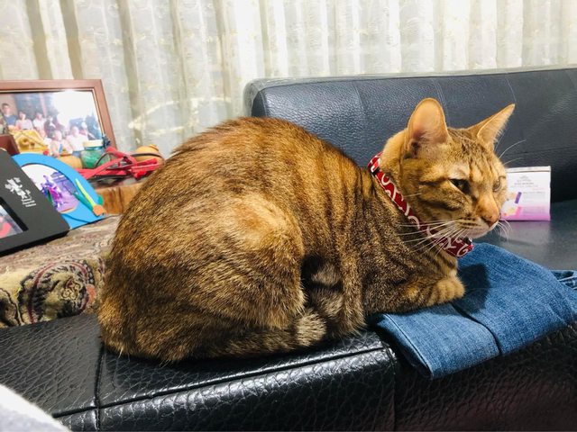 特徵: 虎斑貓,紅色蝴蝶結項圈(項圈上有電話)