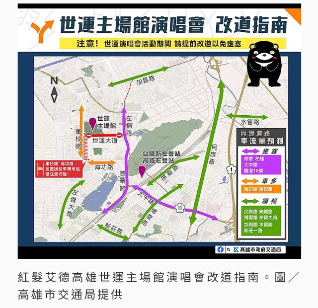標題[新聞] 紅髮艾德今晚高雄世運場館開唱 周邊交通管制看這裡