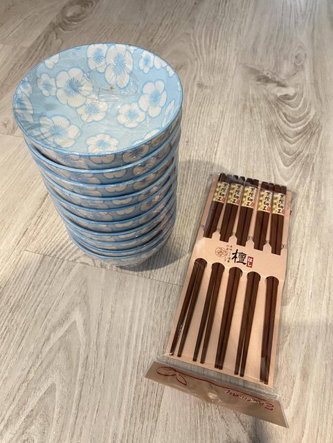 2.全新瓷碗和木筷 如圖未拆封過