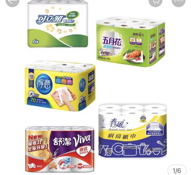 欲換物品:廚房紙巾(6卷1袋,不限品牌)