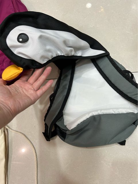 8新加坡鳥園購回的企鵝帽背包,比較適合2-3歲的小朋友,背起來企鵝帽可以戴在頭上,