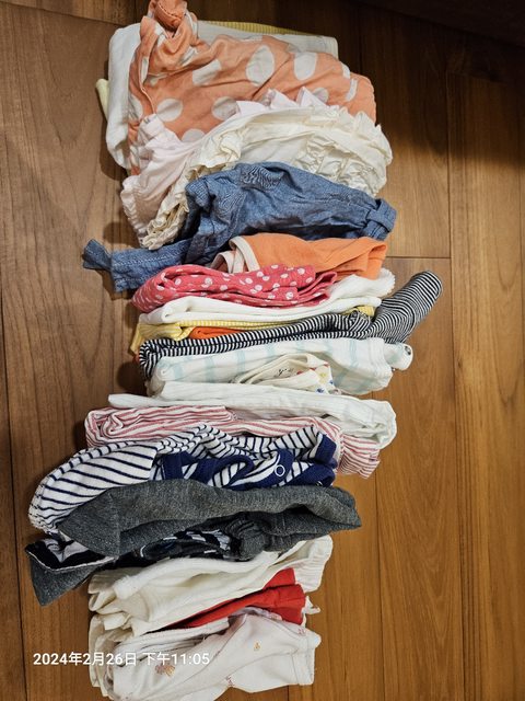 物品名稱:1.大部分是褲子,還有74CM左右短袖包屁衣,不過寶寶是怕熱的肉寶,這些穿