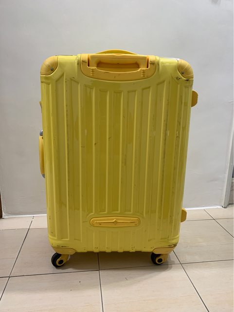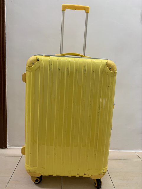 物品名稱:黃色二手行李箱(尺寸約30x58x80cm)