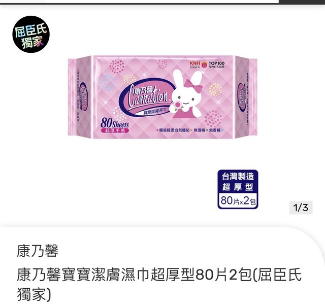 B. 康乃馨寶寶潔膚濕巾超厚型80片2包