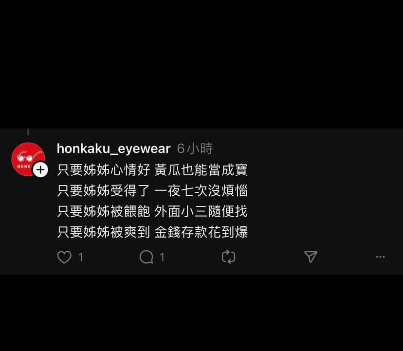推 ismugi : 幫高調 噁男言論還用公司帳號回覆 看來也不缺客人 03/08 00:40