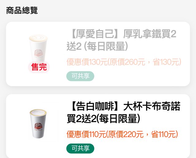 欲換物品:7-11 咖啡,兩款買二送二擇一即可