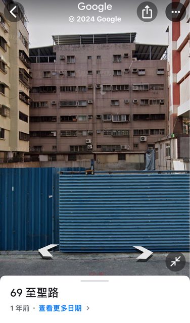 附上一年前的google 街景圖,這個位置目前是黑白相間的建築物。