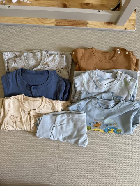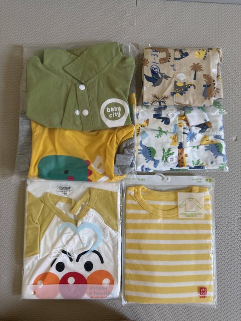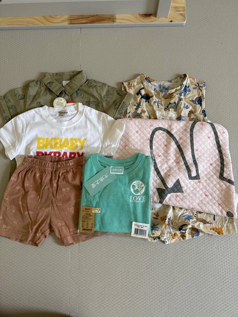 物品狀況:皆全新,綠色及麵包超人為短袖包屁衣,左中恐龍短袖套裝,右二恐龍為吊帶短
