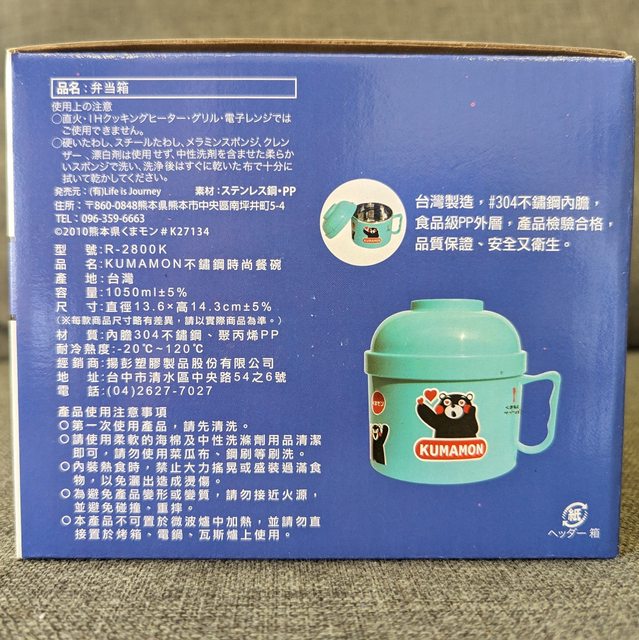 物品名稱:Kumamon 熊本熊內膽304不鏽鋼便當盒(泡麵碗)