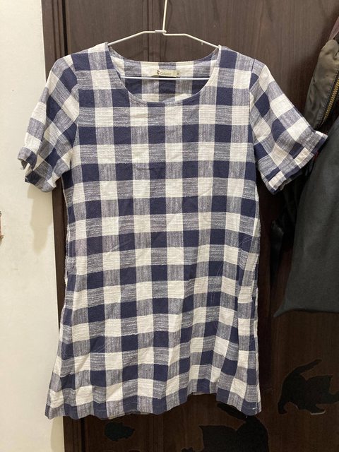 格子長版短袖上衣