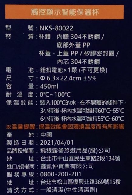 物品名稱:2021年開發金股東會紀念品 智能保溫瓶