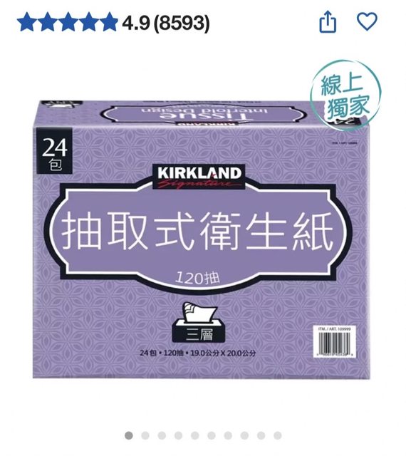 欲換物品:好市多科克蘭 三層抽取衛生紙 120抽 X 兩串(48包)