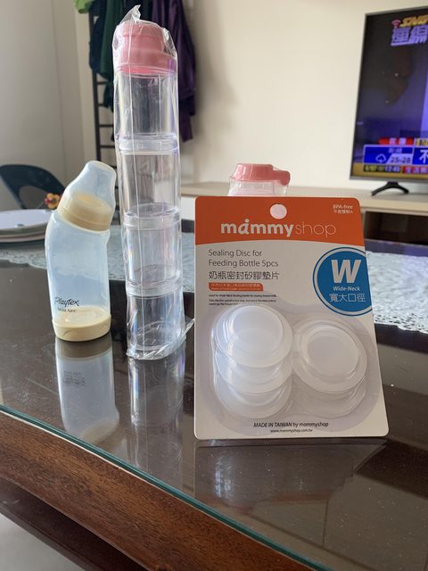 奶瓶相關用品包含2組全新奶粉分裝盒及全新奶瓶密封矽膠墊片及母乳奶瓶(無奶嘴頭,希望能一次帶走