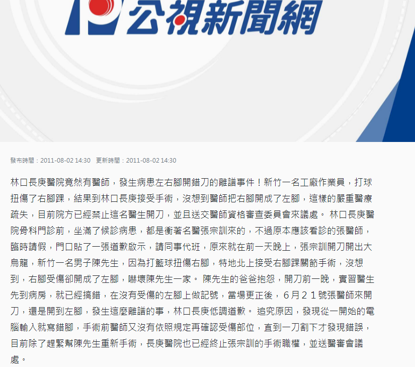→ siekensou000: 笑柄丑角,但這是很嚴重的醫療疏失。 04/11 11:09