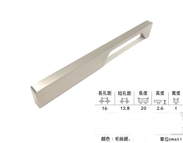 物品名稱:廚櫃鋁合金實心把手8支(銀)孔距16公分 (附全新螺絲一包)