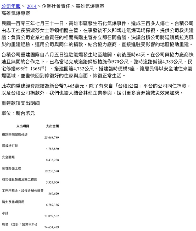 → f771208 : 記得氣爆台積電沒什麼捐,有協助重建房屋,想想也是對 04/15 11:51