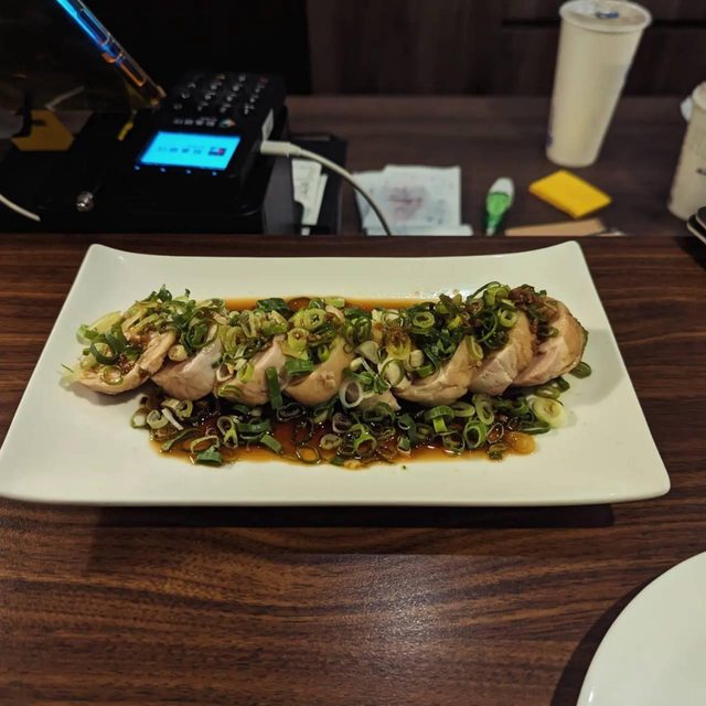好吃的雞 舒肥的冷盤 大量的醬料跟蔥 配酒很棒 我很愛