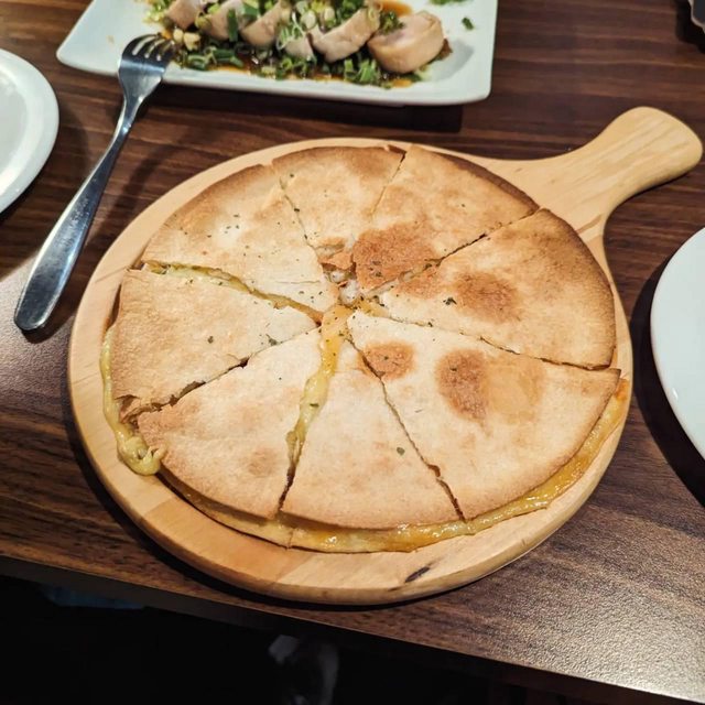 墨西哥辣椒薄餅 烤得很酥脆 起司量也很多 有點辣 看個人接受度 這個即使冷掉了還是很好吃