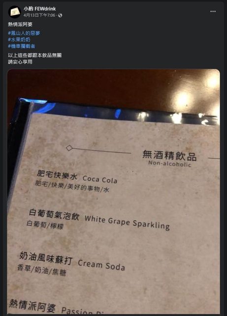 推 VVinSaber : 沒喝酒也能去吃啦 我上次去也是吃東西喝可樂lol 04/15 17:14
