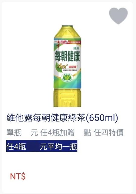 C1和C2各交換每朝健康綠茶 1瓶