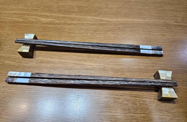 (D)貝殼裝飾筷子筷架一組,購自曼谷恰圖恰市場,全新未使用。