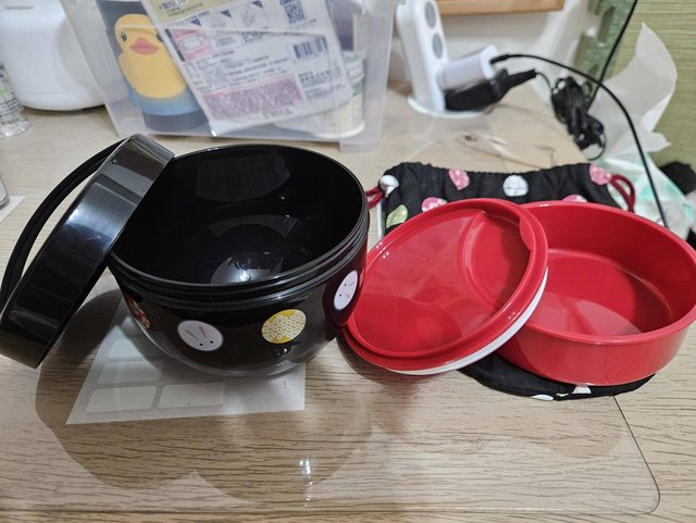 (A)日製兩層便當盒附袋子,購自京都錦市場,全新未使用。