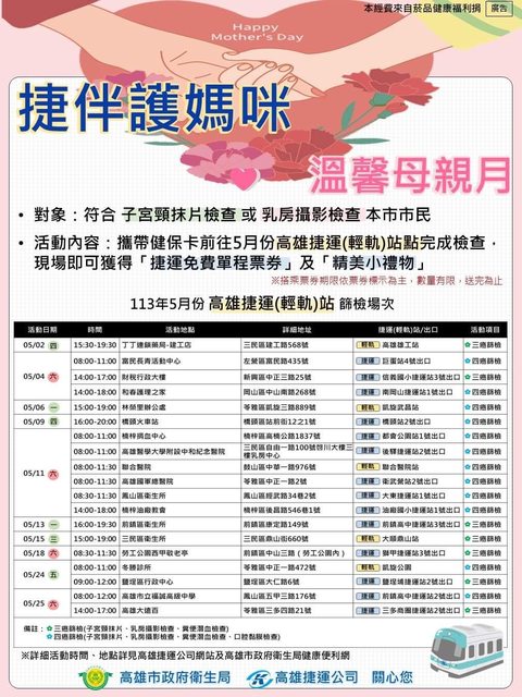 主辦單位:高雄市衛生局、高雄捷運