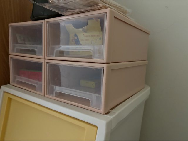 2.粉色小型塑膠收納櫃(4格需一起帶走)