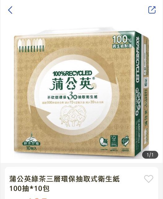 換2串全聯蒲公英綠茶3層衛生紙100抽10包
