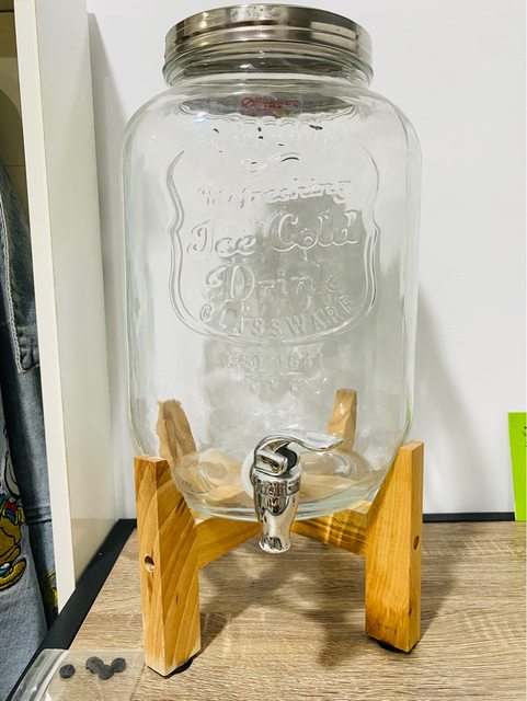 5.裝飲用水玻璃罐+木架 換出