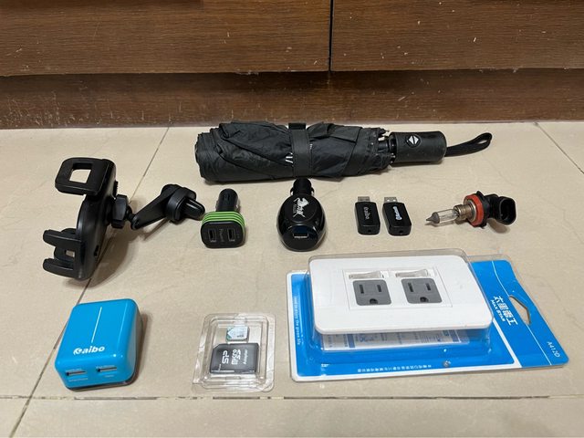 手機架、車充、usb藍芽音源接收器、9006鹵素燈泡、充電器、插座、雨傘、小投影機、